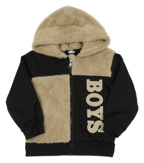 Černo-béžová propínací mikina s nápisem a chlupatou kapucí Shein