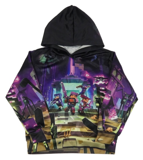 Černo-fialová mikina s minecraft a kapucí