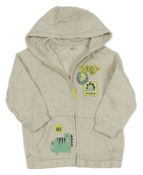 Světlebéžová melírovaná propínací mikina s dinosaury a kapucí George
