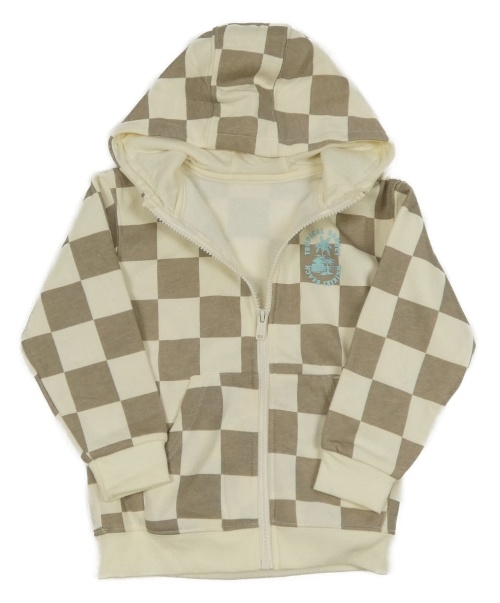 Krémovo-šedá kostkovaná propínací mikina s palmou a kapucí Dunnes
