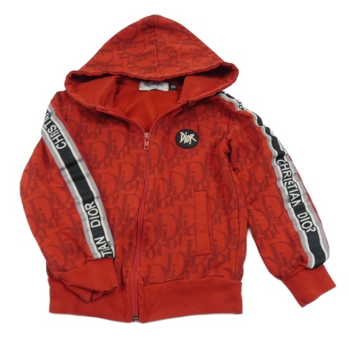 Červeno-šedo-černá propínací mikina s nápisy a kapucí Christian Dior