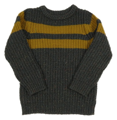 Tmavošedý melírovaný žebrovaný svetr s bronzovými pruhy Nutmeg