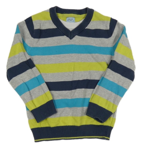 Šedo-tmavomodro-limetkový pruhovaný svetr F&F
