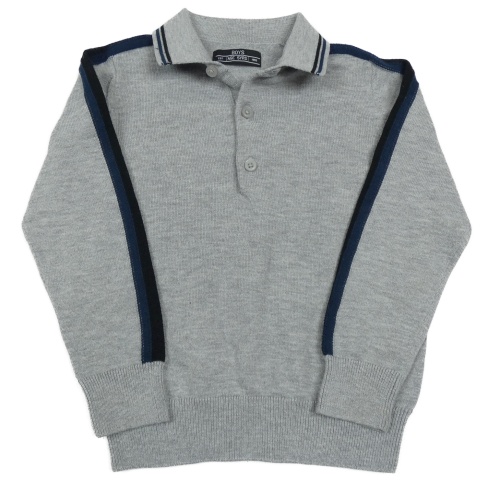 Šedý lehký svetr s tmavomodrými pruhy a límečkem Matalan