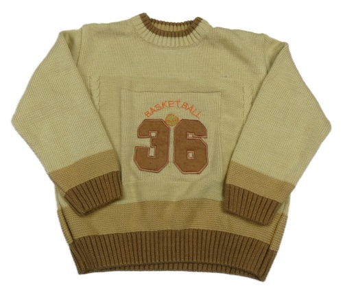 Béžovo-světlehnědo-hnědý pletený oversize svetr s číslem