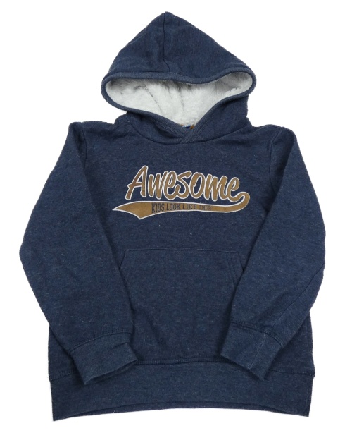 Tmavomodrá melírovaná mikina s nápisy a kapsou a kapucí dopodopo