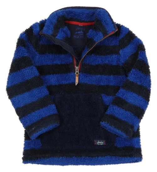 Tmavomodrá chlupatá pruhovaná mikina Joules