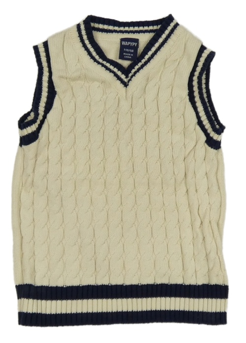 Světlebéžovo-tmavomodrá pletená vesta