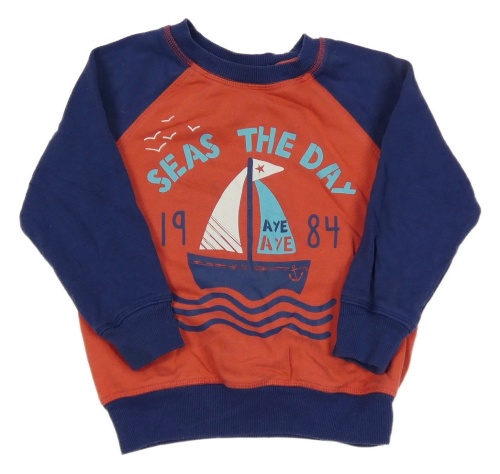 Červeno-tmavomodrá mikina s lodičkou a číslem a nápisem George