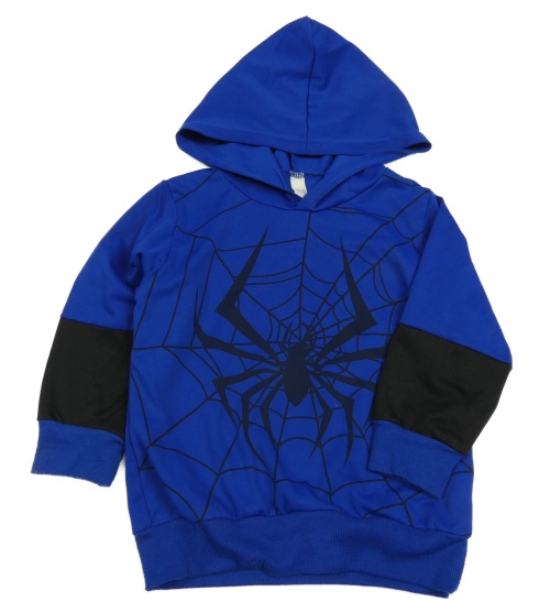 Safírovo-černá mikina s pavoukem a pavučinou a kapucí