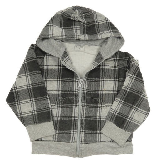 Šedo-tmavošedá kostkovaná propínací mikina s kapucí