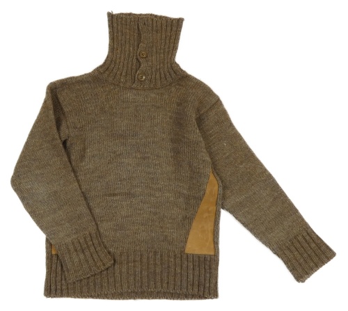 Hnědý svetr s koženkovými nášivkami a rolákem