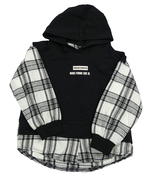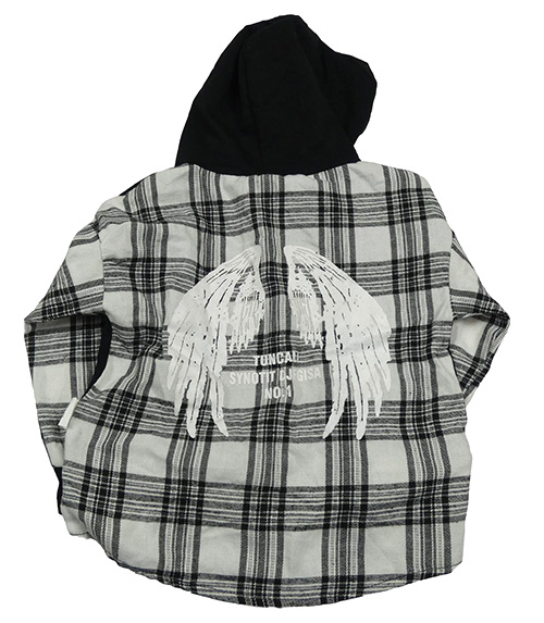 Černo-světlešedá mikina s košilí a kapucí