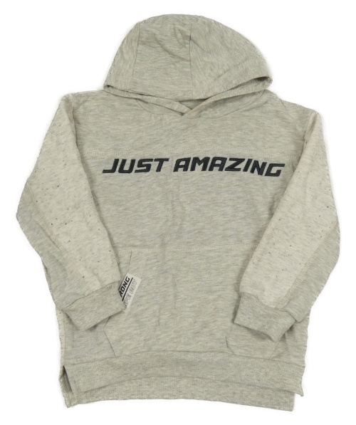 Světlešedá melírovaná mikina s nápisem a kapucí