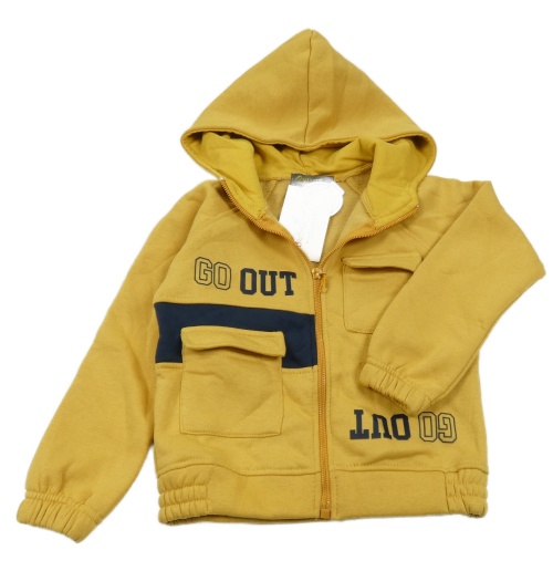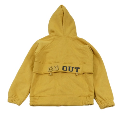 Nové - Hořčicová propínací mikina s nápisem a kapucí