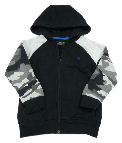 Černo-bílo-army propínací mikina s lebkou a kapucí Next