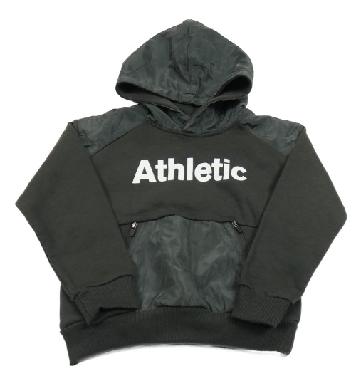 Tmavošedá mikina s nápisem a šusťákovou kapucí