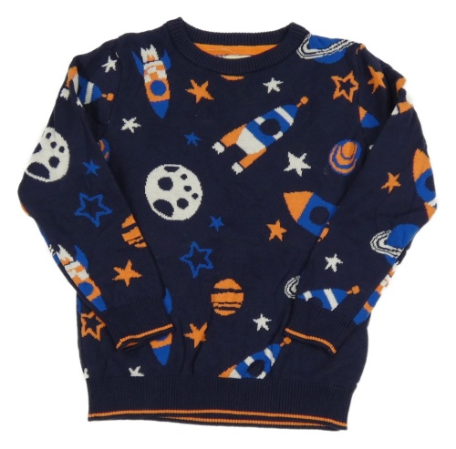 Tmavomodrý svetr s raketami a planetami a hvězdičkami F&F