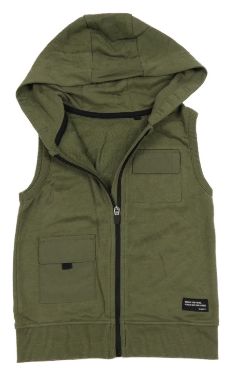 Khaki tepláková propínací vesta s kapsami a kapucí George