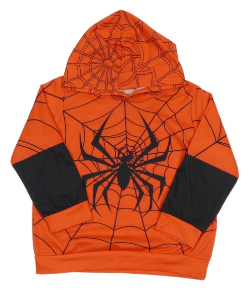 Červeno-černá mikina s pavoukem a kapucí