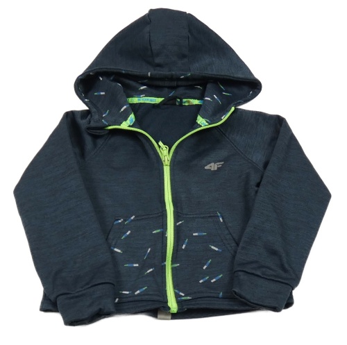 Tmavomodrá žíhaná sportovní propínací mikina se vzorem a kapucí