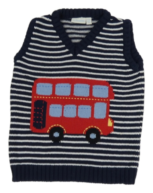Tmavomodro-bílá pruhovaná pletená vesta s doubledeckerem Jojo Maman Bébé