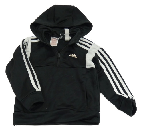 Černá sportovní mikina s pruhy a logem a kapucí Adidas