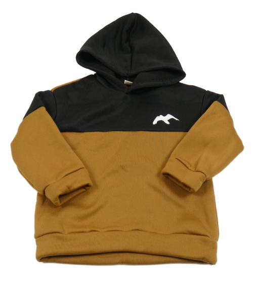Černo-hnědá mikina s ptákem a kapucí