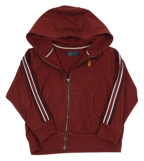 Vínová propínací oversize mikina s výšivkou a pruhy a kapucí Next