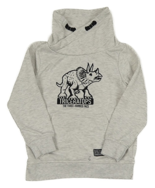Šedo-bílá melírovaná mikina s dinosaurem a komínovým límcem Dopodopo
