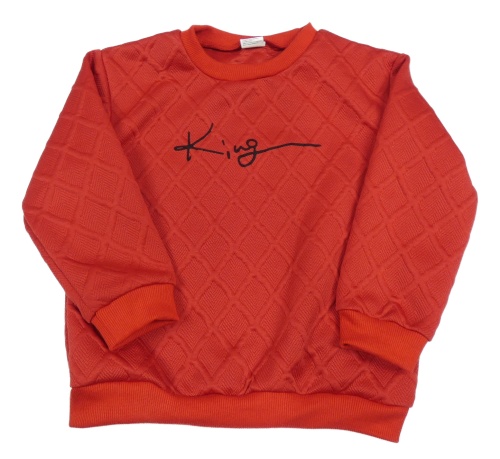Červená vzorovaná mikina s nápisem