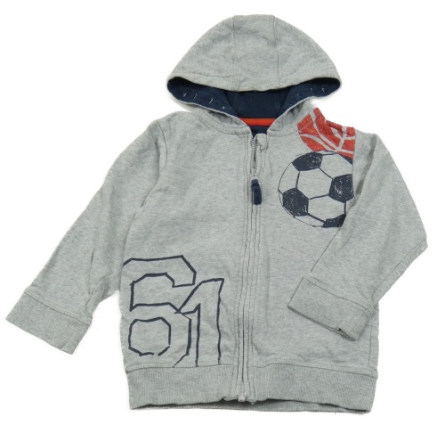 Šedá melírovaná propínací mikina s fotbalovým míčem a kapucí Mothercare