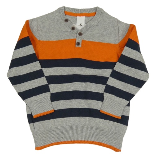 Šedo-tmavomodro-oranžový pruhovaný svetr C&A