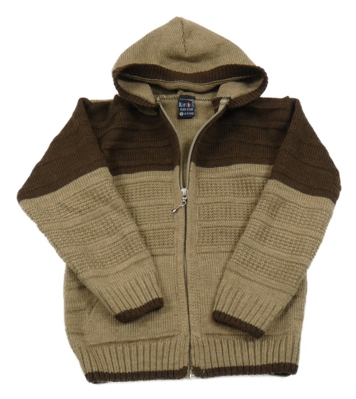 Hnědo-kávový vzorovaný žebrovaný pletený propínací svetr s kapucí