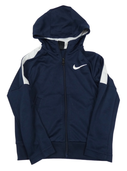 Tmavomodro-bílá propínací sportovní mikina s logem a kapucí Nike