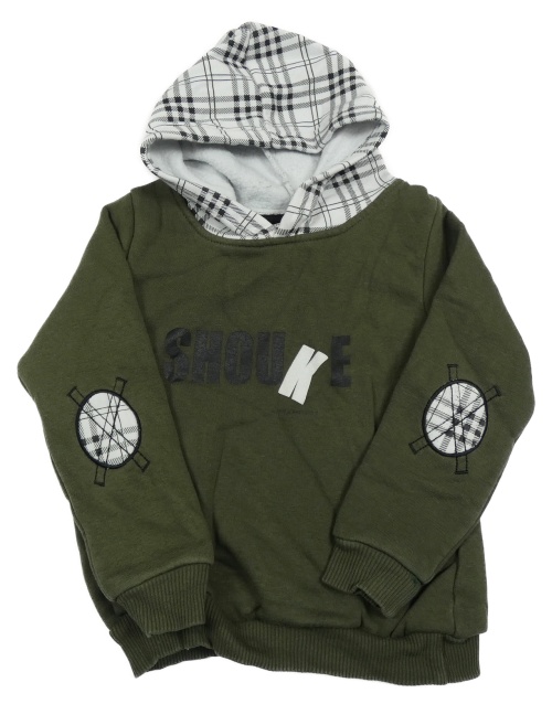 Khaki mikina s nápisem a kostkovanou kapucí
