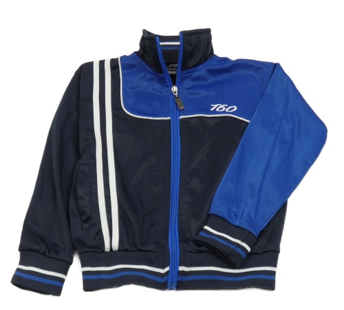Tmavomodro-modrá sportovní propínací mikina s číslem a pruhy