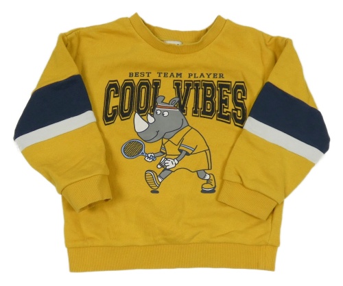 Hořčicovo-bílo-tmavomodrá mikina s nosorožcem C&A