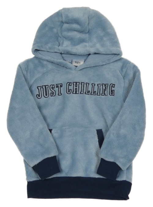 Modrá chlupatá mikina s nápisem a kapucí BPC