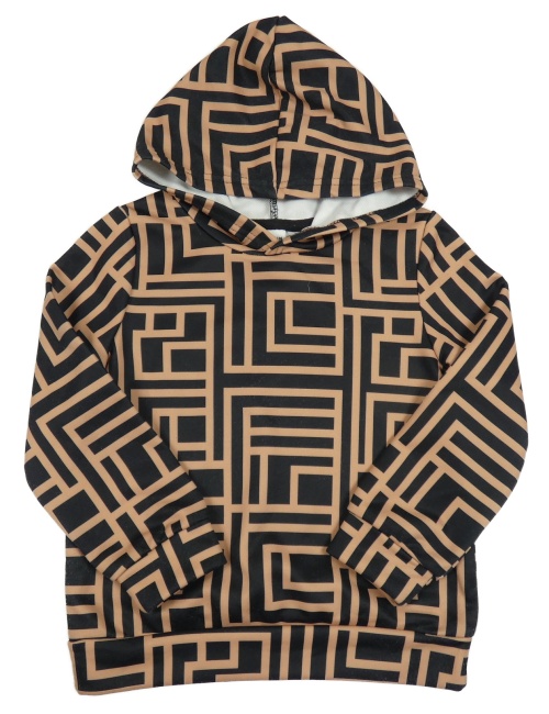 Černo-hnědá vzorovaná mikina s kapucí SHEIN