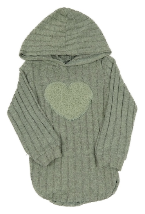 Khaki-šedý žebrovaný svetr se srdíčkem a kapucí