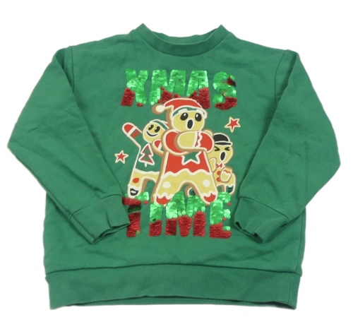 Zelená mikina s perníčky a nápisem z překlápěcích flitrů Lefties
