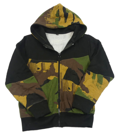 Černo-hnědo-khaki propínací mikina se vzorem a kapucí