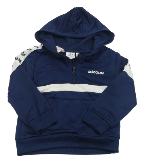 Tmavomodrá sportovní mikina s šedým pruhem a logem a kapucí Adidas