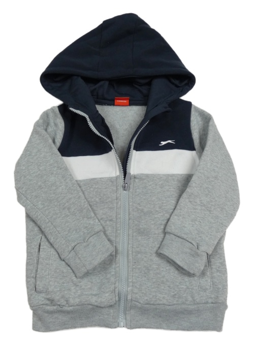 Šedo-tmavomodro-bílá propínací mikina s kapucí Slazenger