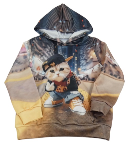 Antracitovo-béžová sportovní mikina s kočkou a kapucí