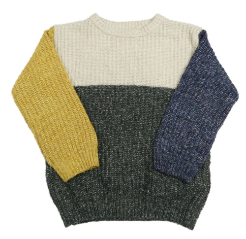 Béžovo-tmavozelený svetr s barevnými rukávy Primark