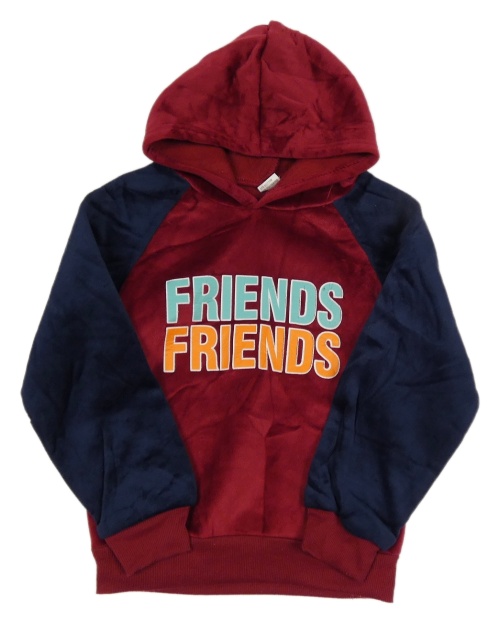 Rubínovo-tmavomodrá plyšová mikina s nápisem a kapucí