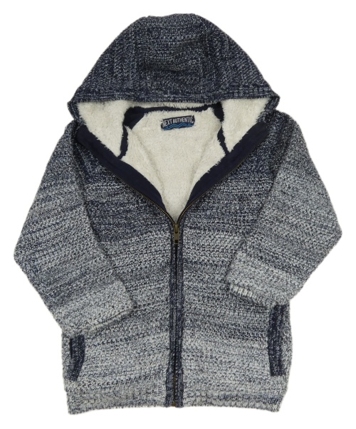 Tmavomodro-bílý melírovaný propínací zateplený svetr s kapucí Next