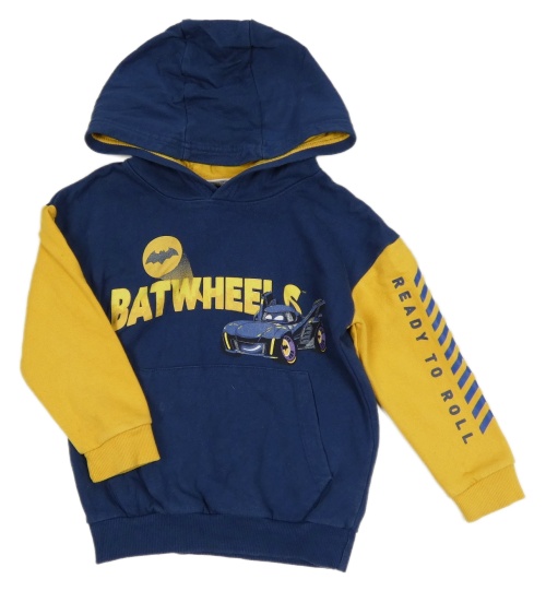 Tmavomodro-žlutá mikina s Batmanem a kapucí